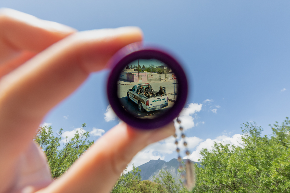 Alejandro “Luperca” Morales, Juárez Archive (7512 Maravillas Street), 2020–. Novelty magnifying keychain containing 35mm slide, 2 5/16 × 1 1/2 × 1 3/8 inches each. Image courtesy the artist. Photo: Michelle Lartigue.