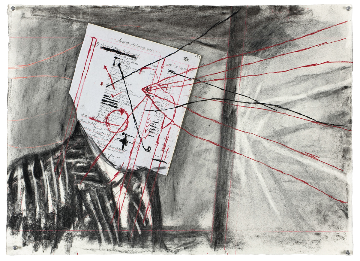 William Kentridge, drawing for the film Other Faces, 2011. Charcoal and colored pencil on paper, 22 1⁄2 × 31 inches. Courtesy the Broad Art Foundation.