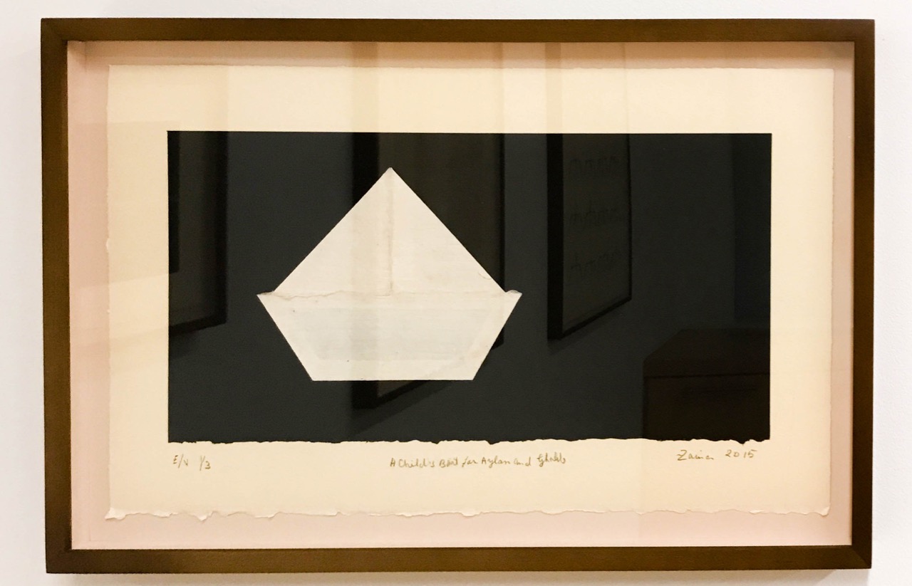Zarina, A Child’s Boat for Aylan and Ghalib, 2015. Installation view. Image courtesy the Asian/Pacific/American Institute at NYU.