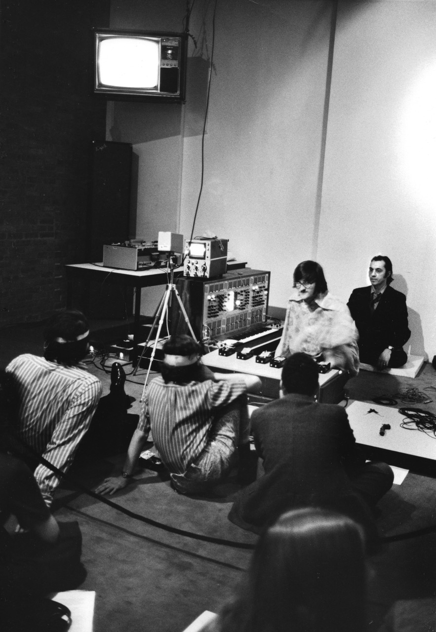Image from David Rosenboom’s installation and performance event Ecology of the Skin at Automation House in New York in 1970, which included brainwave music performances, brainwave music audience participation, visual phosphene stimulation stations, and information presentations. Photo: Peter Moore. Image courtesy Black Truffle.
