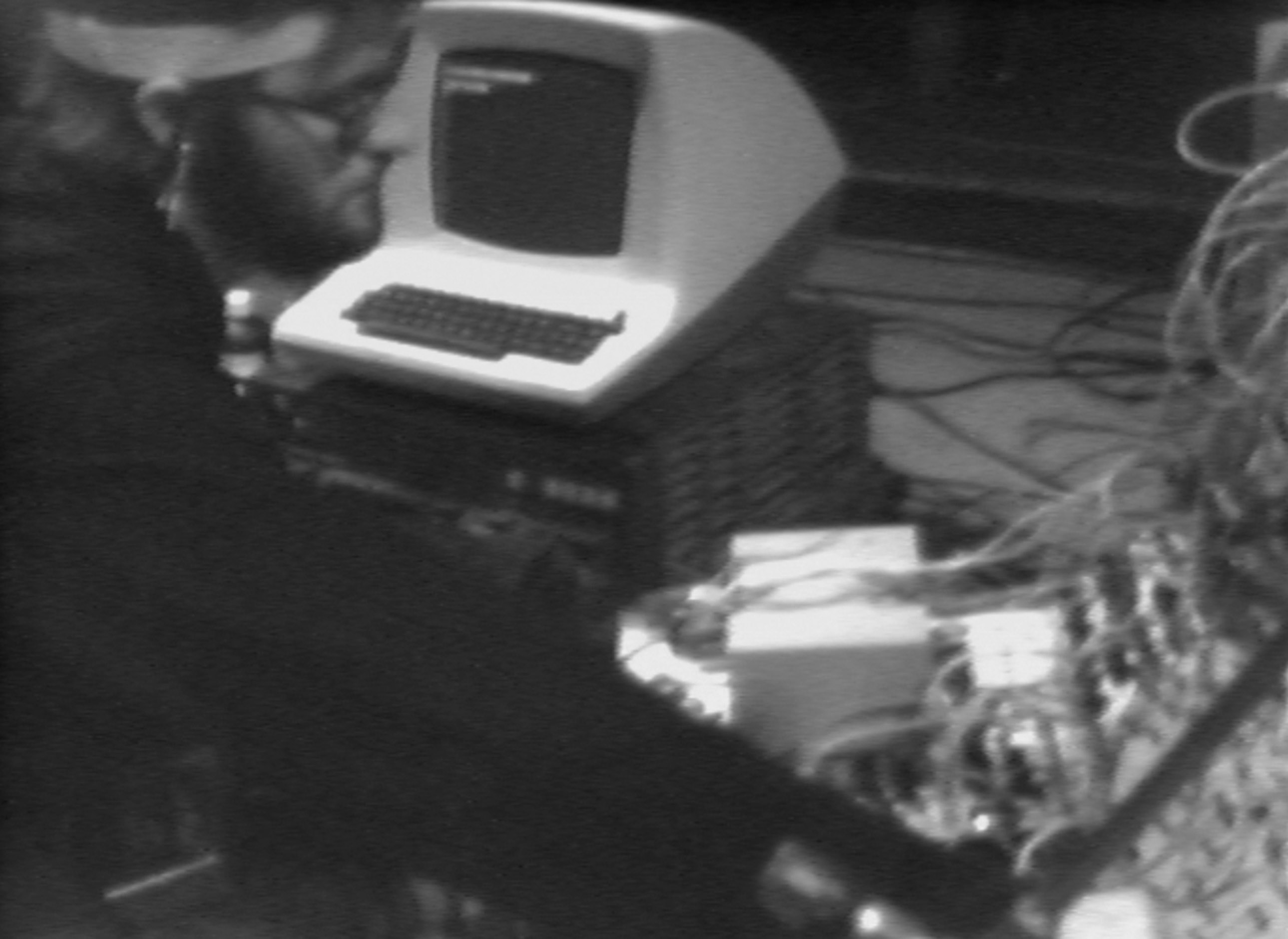 Still from video made by Western Front, Vancouver, of David Rosenboom performing “On Being Invisible” there on February 28, 1977. Image courtesy Black Truffle.