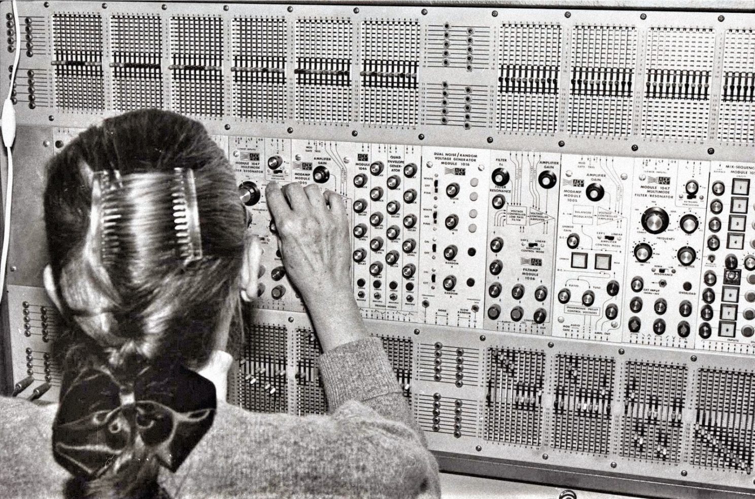 Éliane Radigue in her studio, Paris, ca. 1970s. Photo: Yves Arman.