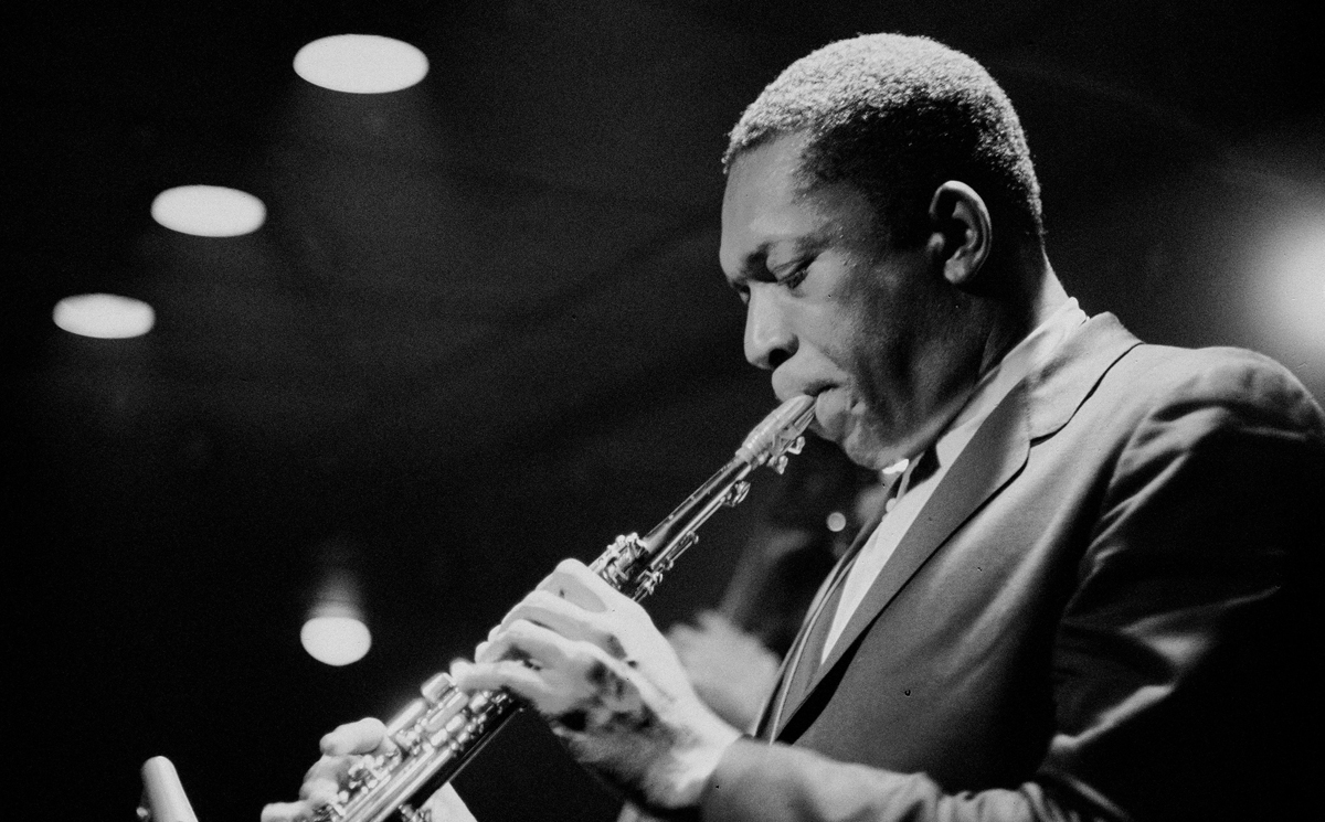 John Coltrane performing (year unknown), as seen in Fire Music. Photo: Lee Tanner – The Jazz Image. Courtesy Submarine Deluxe.
