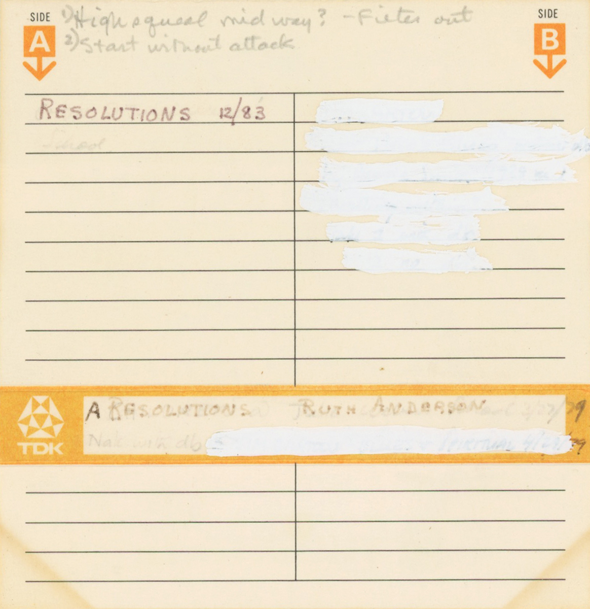 J-card for 1983 cassette sub master of Ruth Anderson’s “Resolutions.” Courtesy Annea Lockwood.