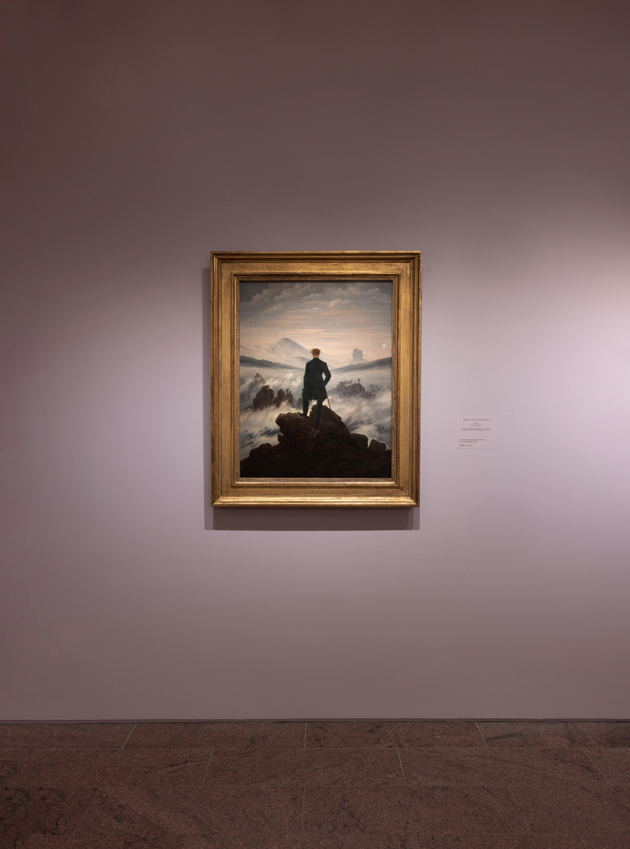 Caspar David Friedrich: The Soul of Nature, installation view. Courtesy Metropolitan Museum of Art. Photo: Richard Lee. Pictured: Wanderer above the Sea of Fog, ca. 1817.
