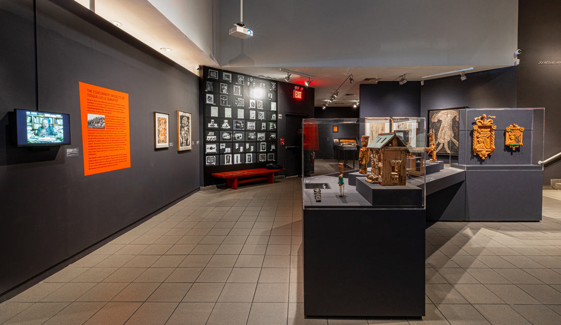 Francesc Tosquelles: Avant-Garde Psychiatry and the Birth of Art Brut, installation view. Courtesy American Folk Art Museum. Photo: Eva Cruz, EveryStory. Pictured: Jean Dubuffet, The Master of Ceremonies, 1955.