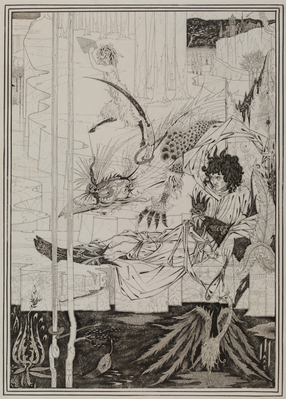 Aubrey Beardsley, How Arthur saw the Questing Beast, 1893. Ink and wash on paper, 14.88 × 10.63 inches. Image courtesy Tate Britain.