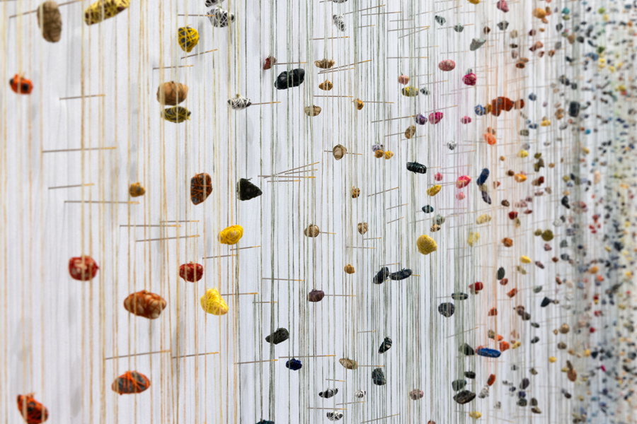 Jesse Krimes: Corrections, installation view. Courtesy Metropolitan Museum of Art. Photo: Hyla Skopitz. © Metropolitan Museum of Art. Pictured: Apokaluptein:16389067, 2010–13 (detail).