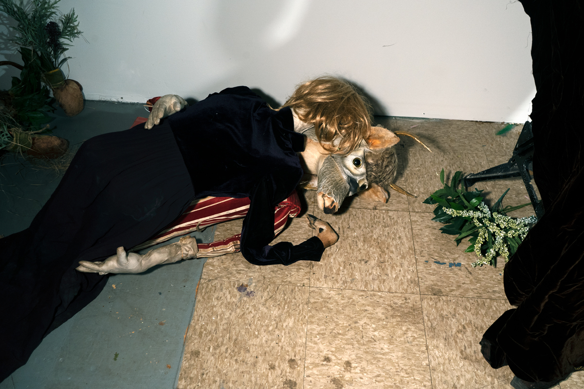 With her new exhibition, at Higher Pictures, of small, dimly illuminated photographs, Claire Pentecost is perhaps an unlikely entrant into this tradition of the painted spiritual warning. But, in images that float between the categories of still life and portrait, that seem to hail from an indistinct past, no particular era, she favors a similar symbolic density. Taxidermized quarry conjoin with cast-off clothing, plant matter, toys, and mannequin parts to form the hybrid figures that star in her vignettes, recalling the decaying clutter of aristocratic décor. The absurd costumes and predicaments of her Frankenstein-ed protagonists evoke something akin to the moral peril of Hals’s vain young man (or that of any of us). And, echoing her Baroque precursors, Pentecost underscores that the end is nigh—or already upon us.