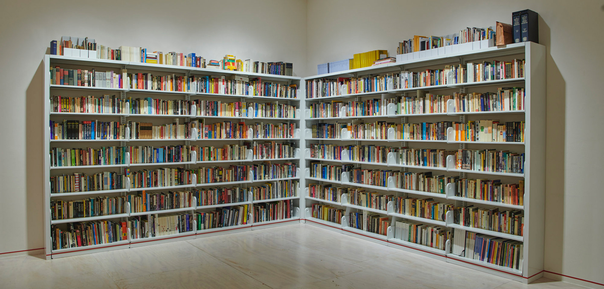 Gregg Bordowitz: I Wanna Be Well, installation view. Pictured: Gregg Bordowitz, Selections from Gregg Bordowitz’s library, 1983–2013. Courtesy MoMA PS1. Photo: Kyle Knodell.