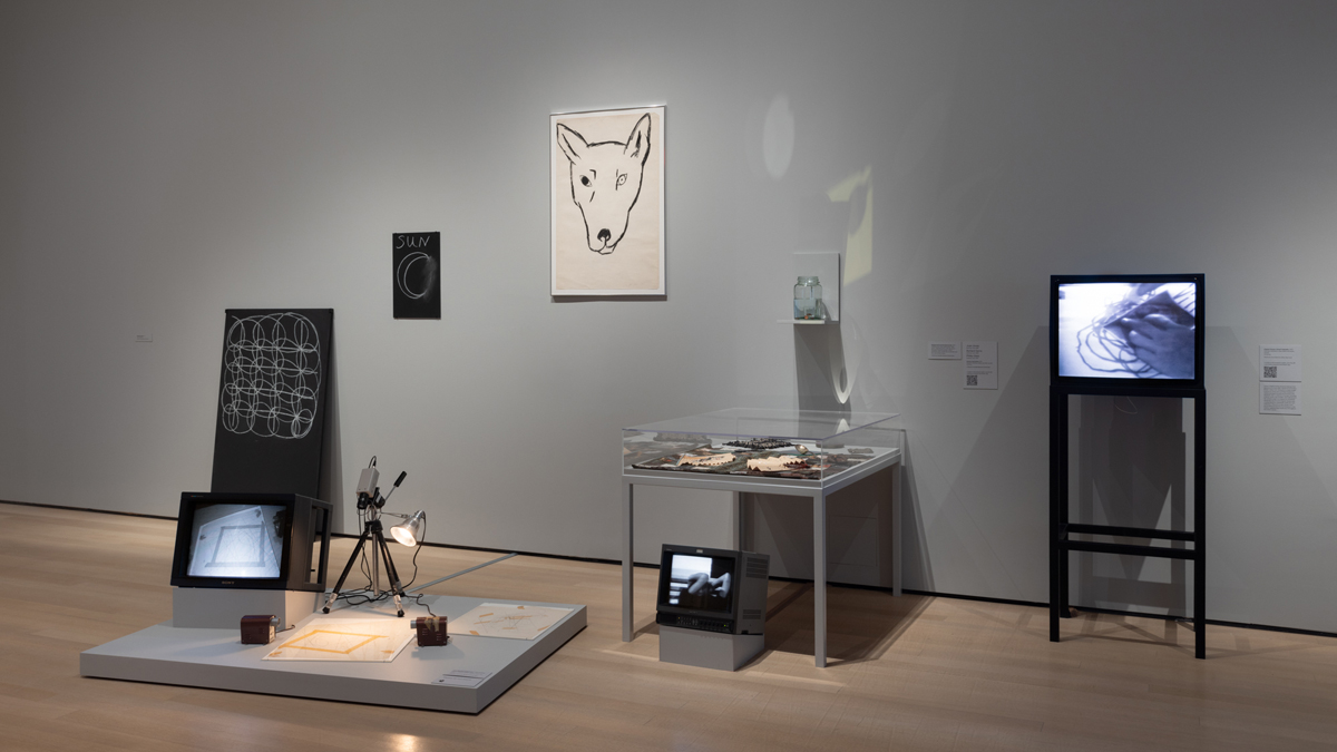 Joan Jonas: Good Night Good Morning, installation view. Courtesy Museum of Modern Art. Photo: Jonathan Dorado. Pictured: Lines in the Sand, 2002.