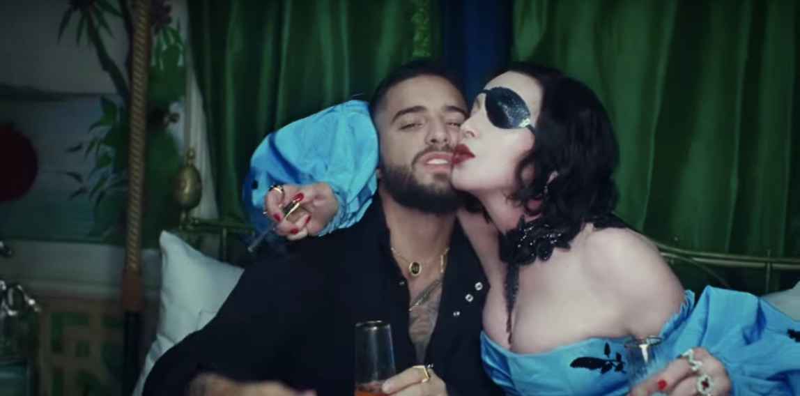 “Killers” represents the perils of her approach, but for the most part, Madonna pulls it off. The album’s opening song, “Medellín,” a collaboration with Colombian reggaeton star Maluma, released as the lead single in April, promises magic with its first line (“I took a pill and had a dream . . .”) before seguing into a cheerfully sexy, endlessly listenable Latin-pop duet. The hooky, rapid-fire party track “Faz Gostoso,” featuring Brazilian singer Anitta and sung almost entirely in Portuguese, is my favorite, with its skittering beat, chaos of vocal samples, sirens, and explosions of sub-bass. There is also the bizarre and moving call-and-response batuque song, titled “Batuka,” for which the pop star worked with an all-women group of Cape Verdean musicians, layering epic electronic elements over their djembe polyrhythms. The singer’s cyborg-queen voice, auto-tuned almost beyond recognition, cuts through the drumming, with a kind of hymn that invokes an unnamed struggle. The women faithfully echo each line.