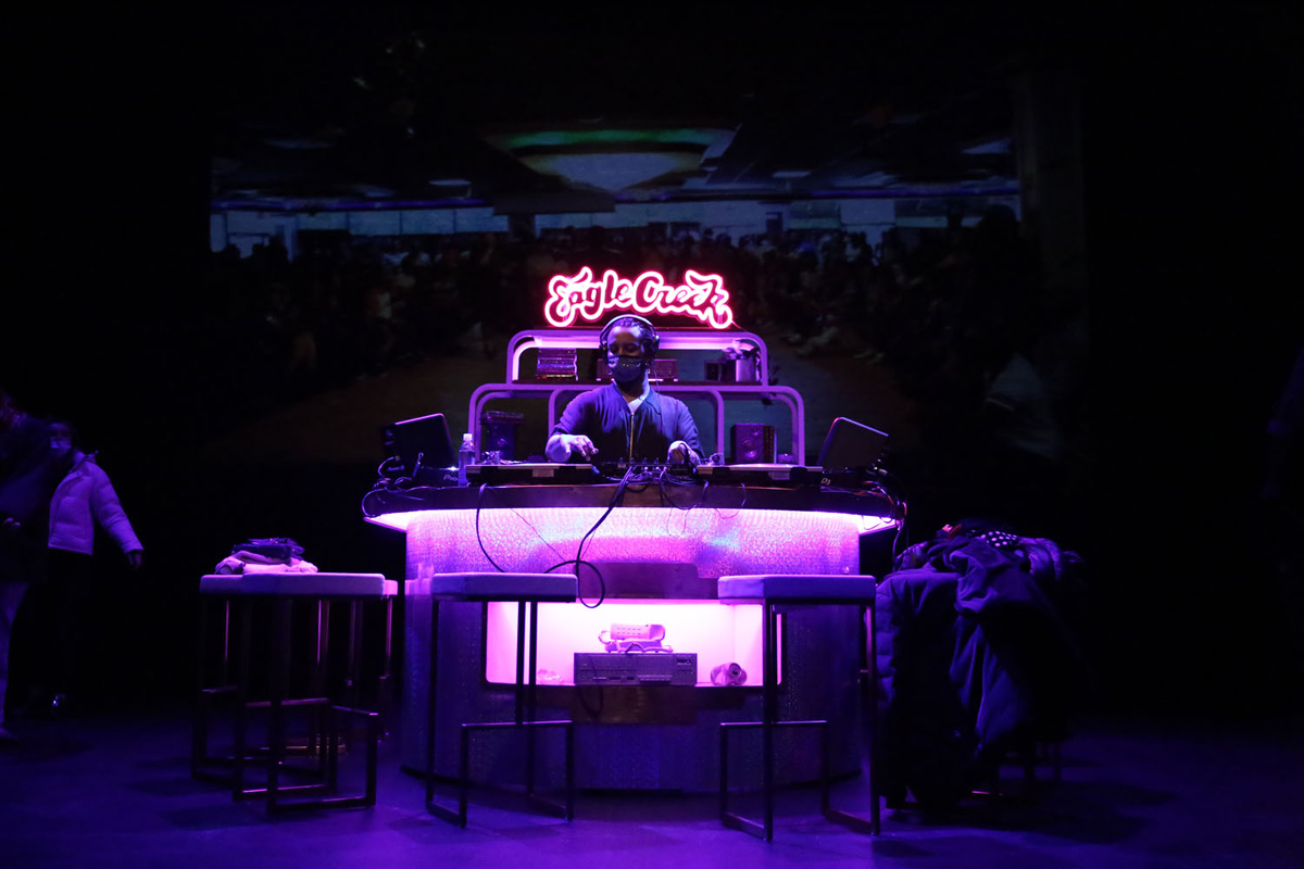Sadie Barnette: The New Eagle Creek Saloon, installation view, Saturday Sessions event, 2022. Courtesy the Kitchen. Photo: Paula Court.
