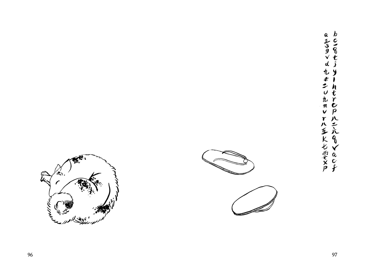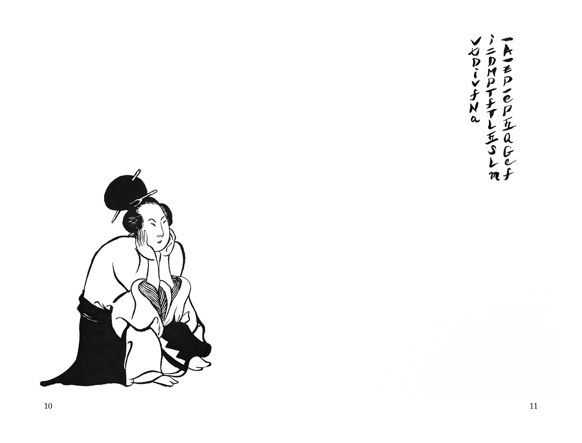 There simply isn’t that much Tominaga to work with. He died in 1746, at the age of thirty-one. And that seventeen-page tract in Monumenta Nipponica contains more of Tominaga’s words than this new full-length book. Above All Waves was assembled and edited and introduced by artist Paul Chan, in collaboration with translator Yuzo Sakuramoto, for Chan’s Badlands Unlimited imprint. This is really Chan’s book. His introduction is longer than the Tominaga texts, which are presented bilingually: English on the recto page with Japanese positioned verso, like a poetry book, with various spreads illustrated by the artist. Roughly a third of the passages in Above All Waves are from The Writings of an Old Man and the rest are from Emerging from Meditation, though Chan and Sakuramoto translate that title as Words After Enlightenment, as well as a few passages from the longest surviving Tominaga work, a treatise on music. The two worked from the original Japanese to create new versions, with Chan helping “to polish the wording,” as he explained it to me.