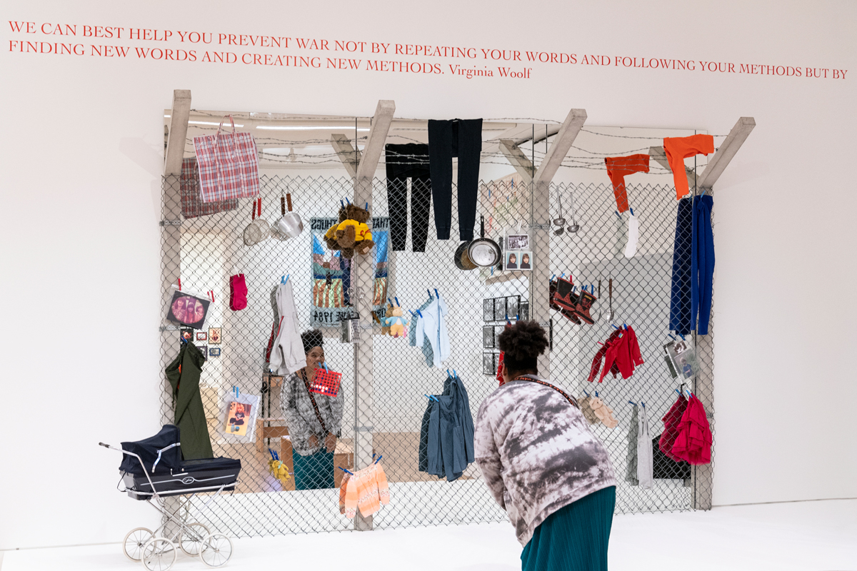 Women In Revolt! Art and Activism in the UK 1970–1990, installation view. Courtesy Tate Britain. Photo: Larina Fernandes. © Tate. Pictured: Margaret Harrison, Greenham Common (Common reflections), 1989–2013.