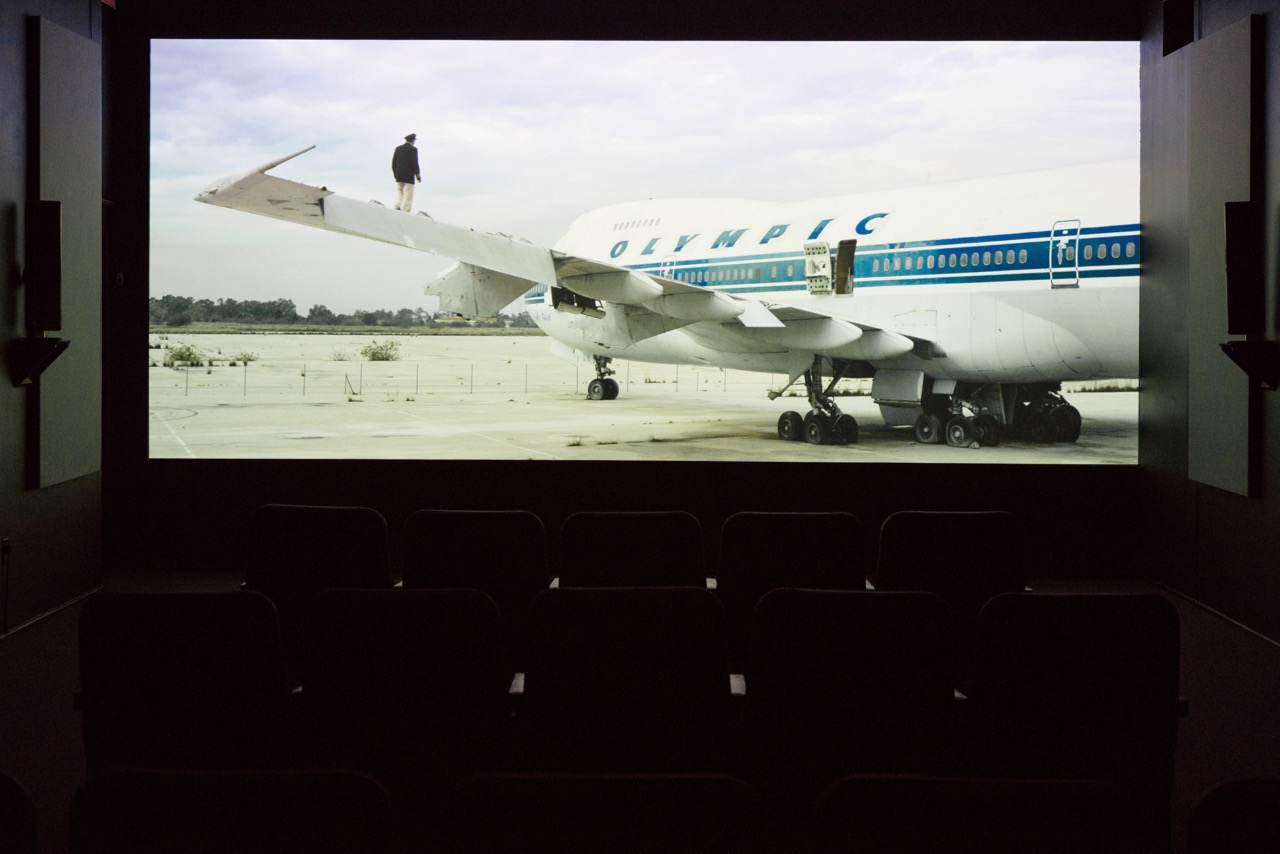 More than contextual, these concerns with family, globalization, and displacement inform the film, which is broken into seven days of the week, from a Monday to a Sunday. In Koukalani’s voiceover, the protagonist narrates a letter to his wife each day; in the first, he says that more and more refugees are arriving, even though he remains completely alone for the entire film and appears to have no contact with the outside world (Ellinikon Airport was in fact temporarily used by the Greek government to house refugees). From one perspective, Tripoli Cancelled might be about a man of Middle Eastern descent with brown skin wandering the ruins of Western civilization—or neoliberalism’s wasteland—in Athens, its fabled birthplace, except that Mohaiemen has titled his exhibition There Is No Last Man. Given the desolation of the setting—empty yet not in ruins—viewers might be tempted to assume that a catastrophic event has previously taken place, destroying or scattering the population.