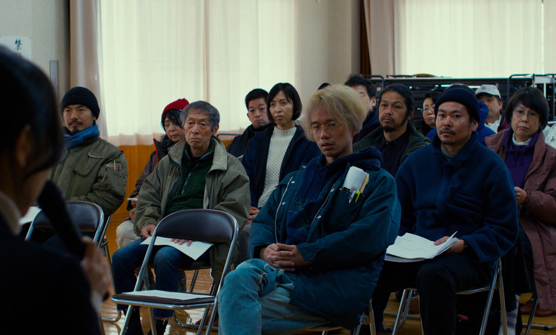 Listening is difficult, too. And it becomes increasingly important as the film proceeds, as the representatives for the glamping project convene a town meeting to discuss their prospectus. The proceedings quickly turn awkward: the plan is rushed and half-baked, the brainchild of Playmode, whose CEO is trying to cash in on government-issued COVID subsidies. The company has given little consideration to the impact its facilities, including an insufficient septic tank, will have on the habitat and the local water supply. Of the firm’s two representatives, the galumphing Takahashi (Ryûji Kosaka) immediately alienates the members of the community with corporate jargon and empty platitudes: “We believe this project is mutually beneficial.” His partner, Mayuzumi—played by Ayaka Shibutani, who memorably portrayed the excessively apologetic nurse-in-training Yuzuki in Happy Hour—is more deferential, promising to learn from the villagers’ wisdom. And, amazingly, it is Takumi who offers an affectless olive branch: the region’s history is actually quite short—“all of us are outsiders”—and if the project is planned well, the residents will help the Playmode reps realize it. “Balance is key,” Takumi says.