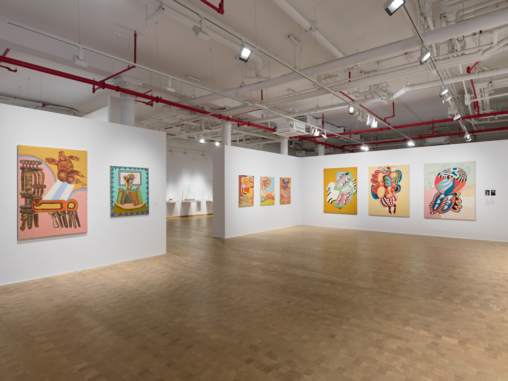 His current exhibition at the Institute for Studies on Latin American Art (ISLAA) comprises two bodies of work installed in two rooms, one displaying Benedit’s early pictorial output, the other populated with examples of the Habitats, the apex of his oeuvre, where the issues of control (a kind of possession) and the lack thereof prompted by his inquiry become clear. In the paintings, dated between 1966 and 1968, creatures resembling machines mark the first appearance of the labyrinth, a recurring motif in Benedit’s work, in the form of organs that contain white undigested, or perhaps indigestible, shapes at times reminiscent of eggs (themselves houses for gestating life). The insides of the creatures are visible, and their outside contours are nested in larger forms that resonate with the smallest ones found in the intestines. Figures can be interpreted as blowups of cells; but upon further examination, the schematic gives way to an anthropomorphic or zoomorphic body. Eyes often help situate heads and, by extension, bodies. While the flatness of the color areas, the emotionless acrylic paint application, and the cartoonish distortion of the renderings clearly connect with a prevalent idiom of the ’60s—that of Pop art—the overall biomorphic vocabulary references Jean Arp.