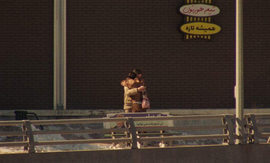 Temporally, spatially, and politically decontextualized facets of Persian culture blanket the postindustrial city that sits near the latitudinal middle of North America. Signs are written in Perso-Arabic and French; Winnipeg rockers the Guess Who’s 1968 song “These Eyes” has, on this plane, always been in Farsi. Here, French remains the language of Quebec while Farsi is the default for the rest of Canada—razzing the colonial construct of English as both a Canadian and global “universal language.” The currency the sisters find is neither a Canadian dollar nor an Iranian rial, but a “riel”—imprinted with a portrait of Riel—the anti-nationalist figure’s omnipresence speaking to the film’s creolized world and rejection of calcified borders.