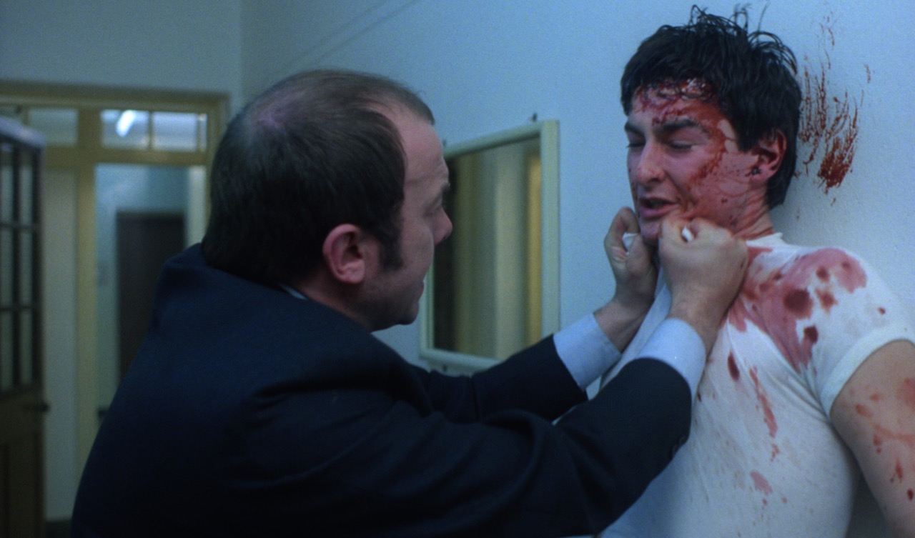 Clarke fully realizes this scenario in Scum, his unflinching 1977 television drama depicting the psychosocial dynamics inside a home for juvenile offenders. Scum was initially banned by the BBC, reportedly for being too shockingly realistic; in defiance, Clarke rapidly produced a second version, based on the same screenplay, for theatrical release in 1979. In both films, the oppression of children by authoritarian adults is mirrored by the bully-ocracy that forms among the boys themselves. “We are all here to learn the rules,” a frosty matron tells one lad, articulating a particularly British fetish for conformity. Scum’s beefy anti-hero Carlin (compellingly portrayed by Ray Winstone in both iterations) becomes the borstal’s “daddy” by pummeling a rival with two billiard balls in a sock. Once he’s cemented his place as top dog, Carlin tells a soft-spoken younger boy that “you’re my missus” now, after he makes clear that “I’m no poof.” Winstone’s performance in this moment is alternatingly tender and threatening. Scrum’s theatrical remake omits the sequence, but both versions include a racially charged indoor rugby match that culminates in the players clawing at each other’s uniforms. The scrum’s orgiastic overtones foreshadow the confusion of sex and brutality in a pivotal scene wherein three boys rape a fourth in the prison’s greenhouse, as an adult overseer looks on and does nothing.