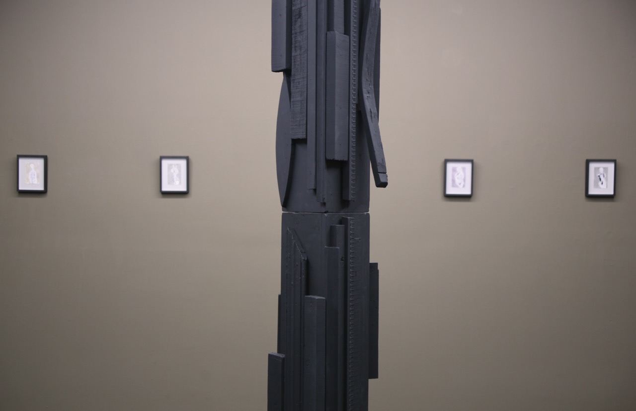 Black obelisk meets Afro Sheened goddesses in the dual show Chimera.