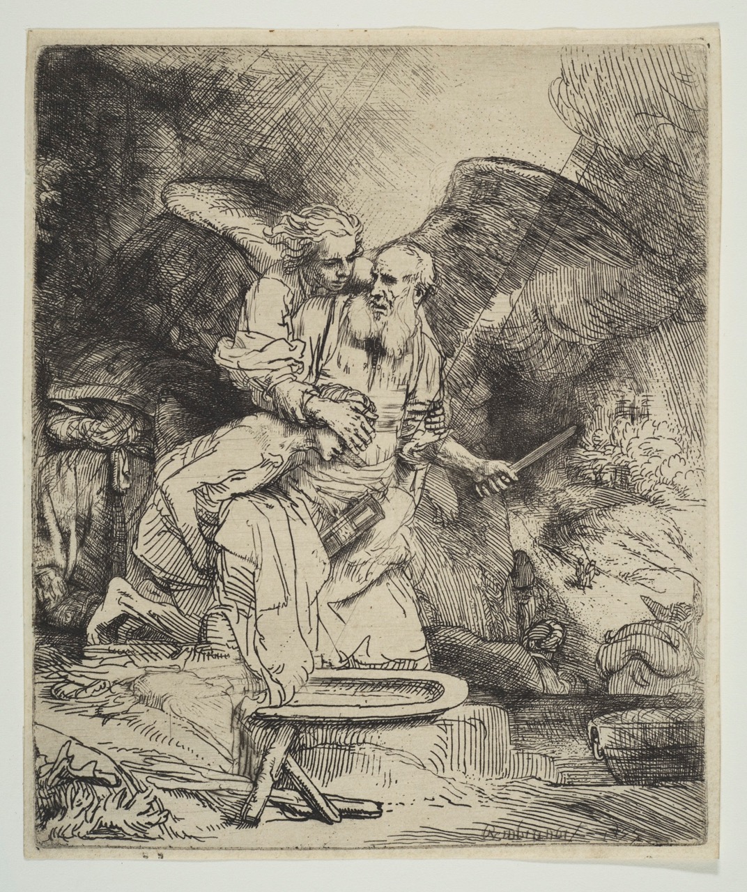 Rembrandt, Sacrifice of Isaac, 1655. Etching and drypoint, only state, 6 ⅛ × 5 ⅛ inches. Photo: Metropolitan Museum of Art.