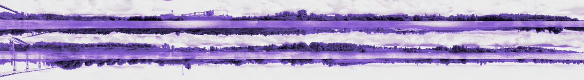 Alan Michelson, Third Bank of the River (Panorama), 2024. Mounted lightbox, 12 × 87 inches. Courtesy the artist.