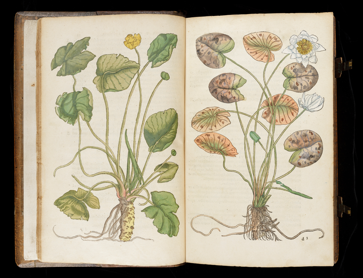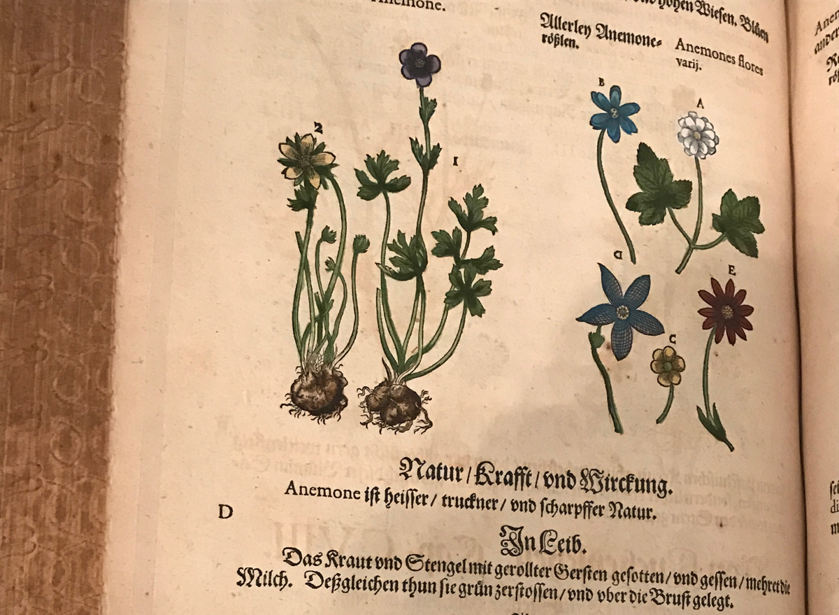 Pietro Andrea Mattioli, Joachim Camerarius the Younger, and Pedanius Dioscorides of Anazarbos, Kreutterbuch (Herbal), 1586 (detail). Photo: Jennifer Kabat.