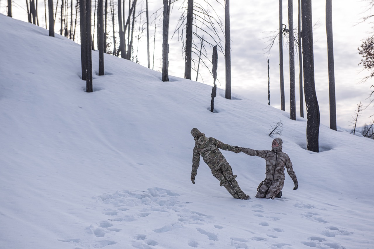 The last time we saw Matthew Barney, he was merrily leading his audience through a literal world of shit. And so one could be forgiven for thinking of Redoubt (2018)—the latest of his Gesamtkunstwerk epics, built around a loose reimagining of the tale of Diana and Actaeon set in the pristine snow-covered terrain of Idaho’s Sawtooth Mountains, a few hours from where the artist grew up—as a form of atonement for the exhaustively crappy adventure offered up in his previous major work, River of Fundament (2014). Compared to that protracted scatological fever dream, Barney treats us to an enterprise that is by comparison crisp, tidy, almost improbably naturalistic. Is Redoubt better understood as an apology for what’s come before, or as an apologia? Do Barney’s new formal tactics mark a change in conceptual strategy, or is this simply an alternative iteration of the artist’s longstanding approach, namely to entice “one of these archetypal narratives to come forward and align itself with what I’m doing”?