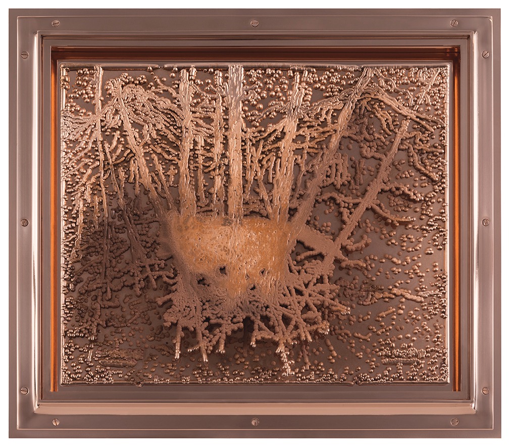 Matthew Barney, Reintroduction: State four, 2018. Electroplated copper plate in copper frame. © Matthew Barney. Image courtesy Gladstone Gallery.