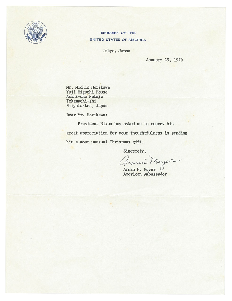 American Embassy, Letter to Horikawa Michio, 1970. Image courtesy Misa Shin Gallery.