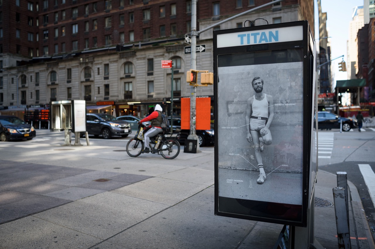 Installation view of Hal Fischer, Street Fashion: Jock (from Gay Semiotics), 1977, for TITAN. Image courtesy the artist, kurimanzutto, and Project Native Informant. Photo: PJ Rountree.