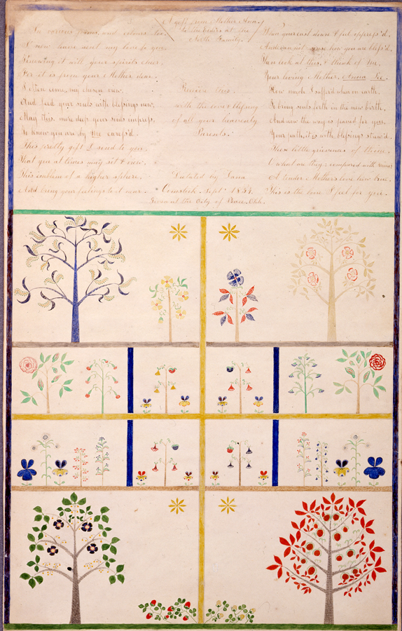 Polly Collins, A Gift from Mother Ann to the Elders at the North Family, 1854. Ink and watercolor on paper, 26 3/4 × 19 3/16 inches. Courtesy Andrews Collection, Hancock Shaker Village.
