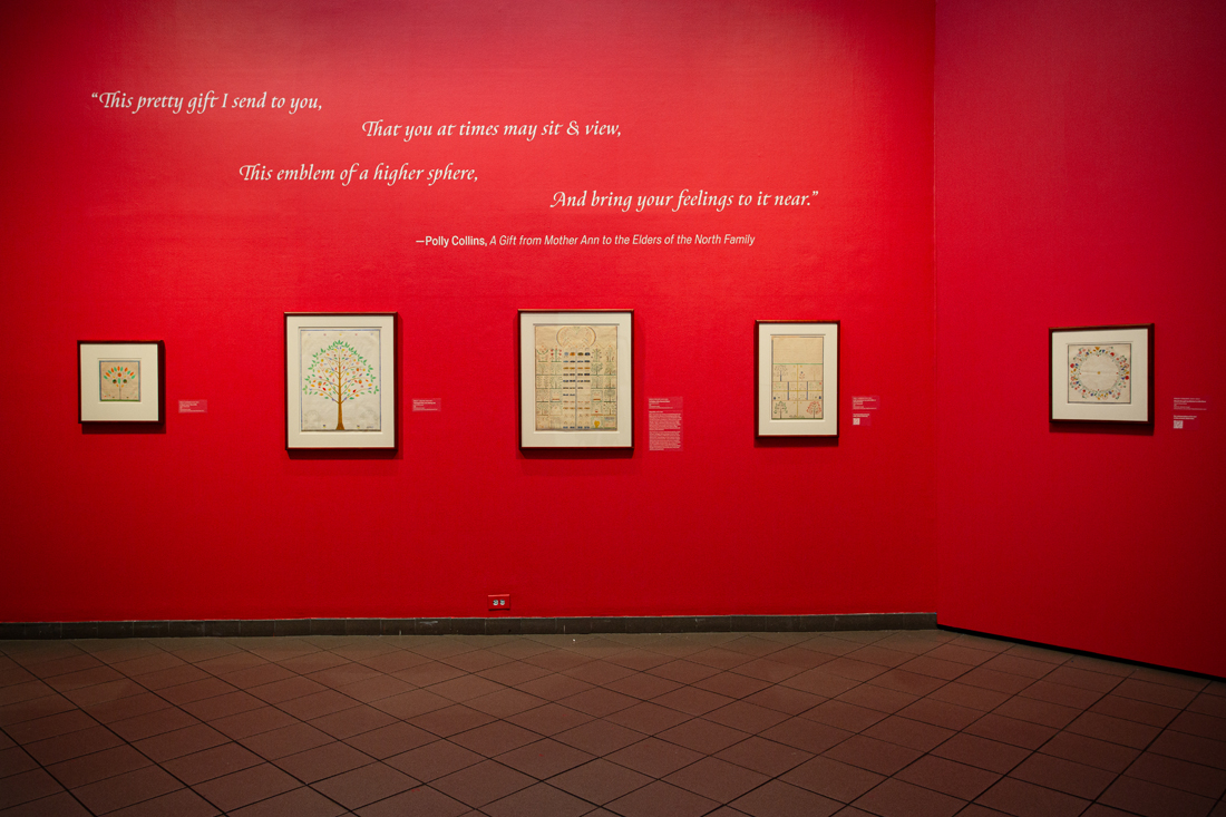 Anything but Simple: Gift Drawings and the Shaker Aesthetic, installation view. Courtesy American Folk Art Museum.