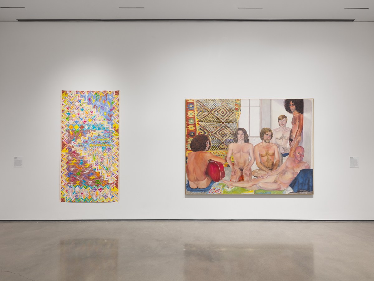 With Pleasure: Pattern and Decoration in American Art 1972–1985, installation view. Courtesy Hessel Museum of Art, Center for Curatorial Studies, Bard College. Photo: Olympia Shannon. Pictured, right: Sylvia Sleigh, The Turkish Bath, 1973.
