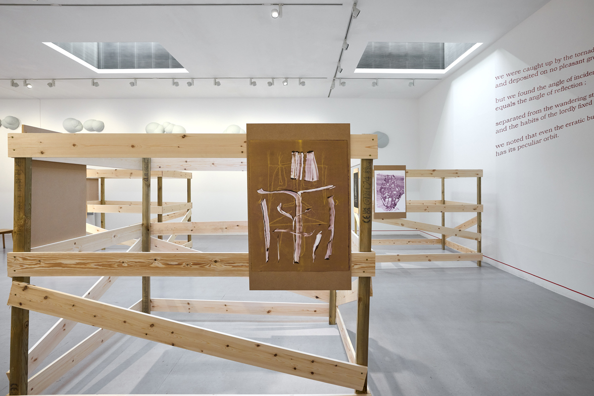 Gregg Bordowitz: There: a Feeling, installation view. Courtesy Camden Art Centre. Photo: Luke Walker. Pictured, upper wall: Baroque Clouds, 2018–ongoing.