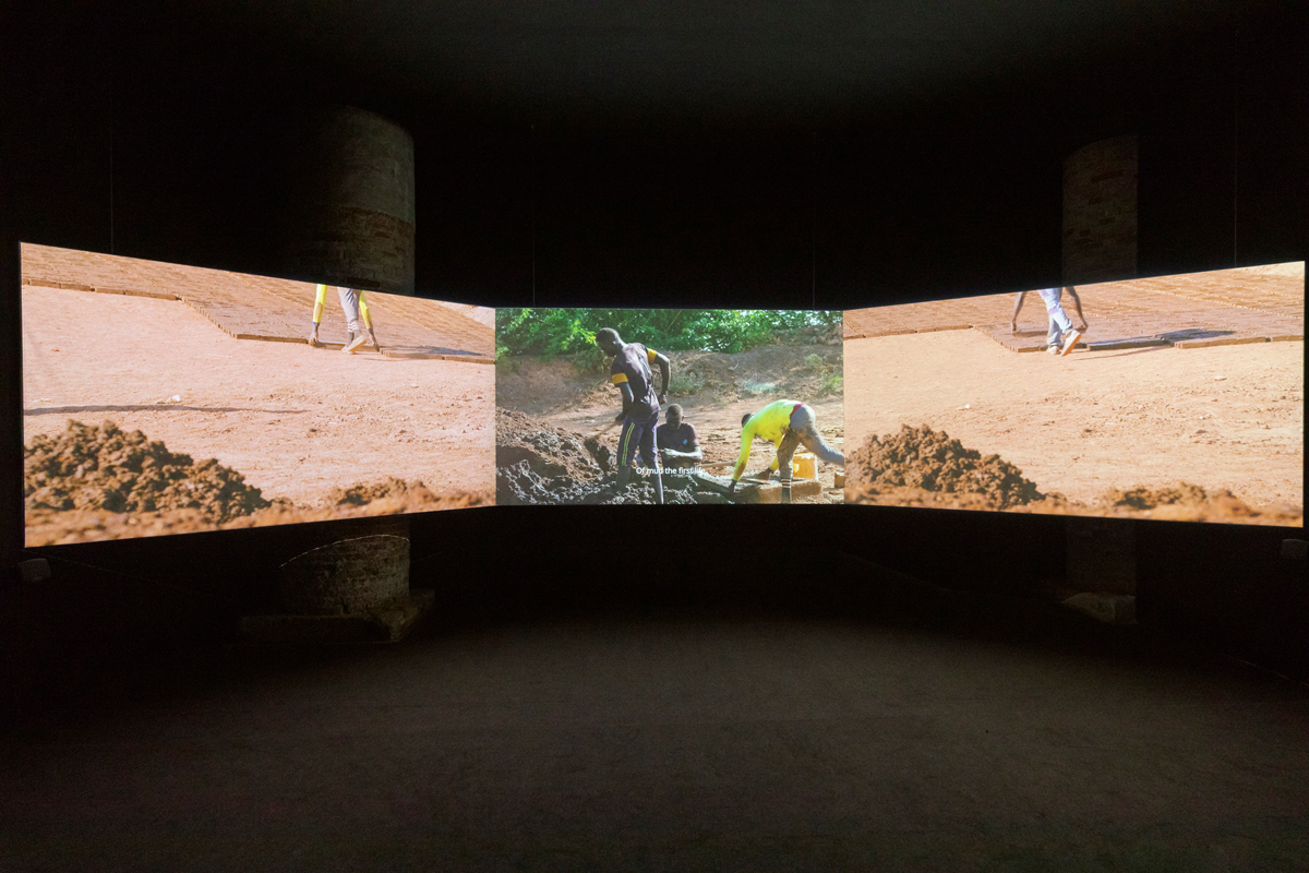 Ali Cherri, Of Men and Gods and Mud, 2022 (still). Three-channel video installation, 20 minutes. Courtesy La Biennale di Venezia. Photo: Roberto Marossi.