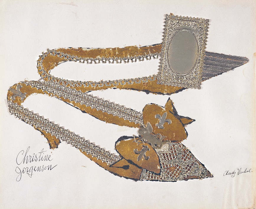 Andy Warhol, Christine Jorgenson, 1956. Collaged metal leaf and embossed foil with ink on paper, 13 × 16 inches. © The Andy Warhol Foundation for the Visual Arts, Inc. / Artists Rights Society (ARS).