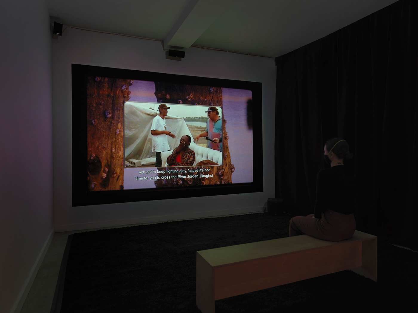 Like Pleasure Garden, Salacia—a saltwater goddess in Roman mythology—is a nom de guerre. The references are numerous. Activist Sylvia Rivera, who appears midway into the film via found footage, assimilates the Hudson to the River Jordan. At the end, Jones uses water as a looking glass. But “salacia” might also suggest the “saltwater slavery” theorized by historian Stephanie E. Smallwood, who sought to write the experience of the transatlantic slave trade not as an orderly linear narrative, but as “an indeterminate passage” of ceaseless rupture with no known end. When, in a voiceover, Rivera says, “You got to keep fighting girly,” she is also speaking to a limboed past—Tourmaline refuses the container of time in this film, and Jones contains the seed that could germinate new readings of that past. Like Toni Morrison’s Sethe in Beloved, for whom “the future was a matter of keeping the past at bay,” there is sweetness in speculation. But in the final moments, Jones gazes into the screen, chanting “We can be anything we want to be” over and over.