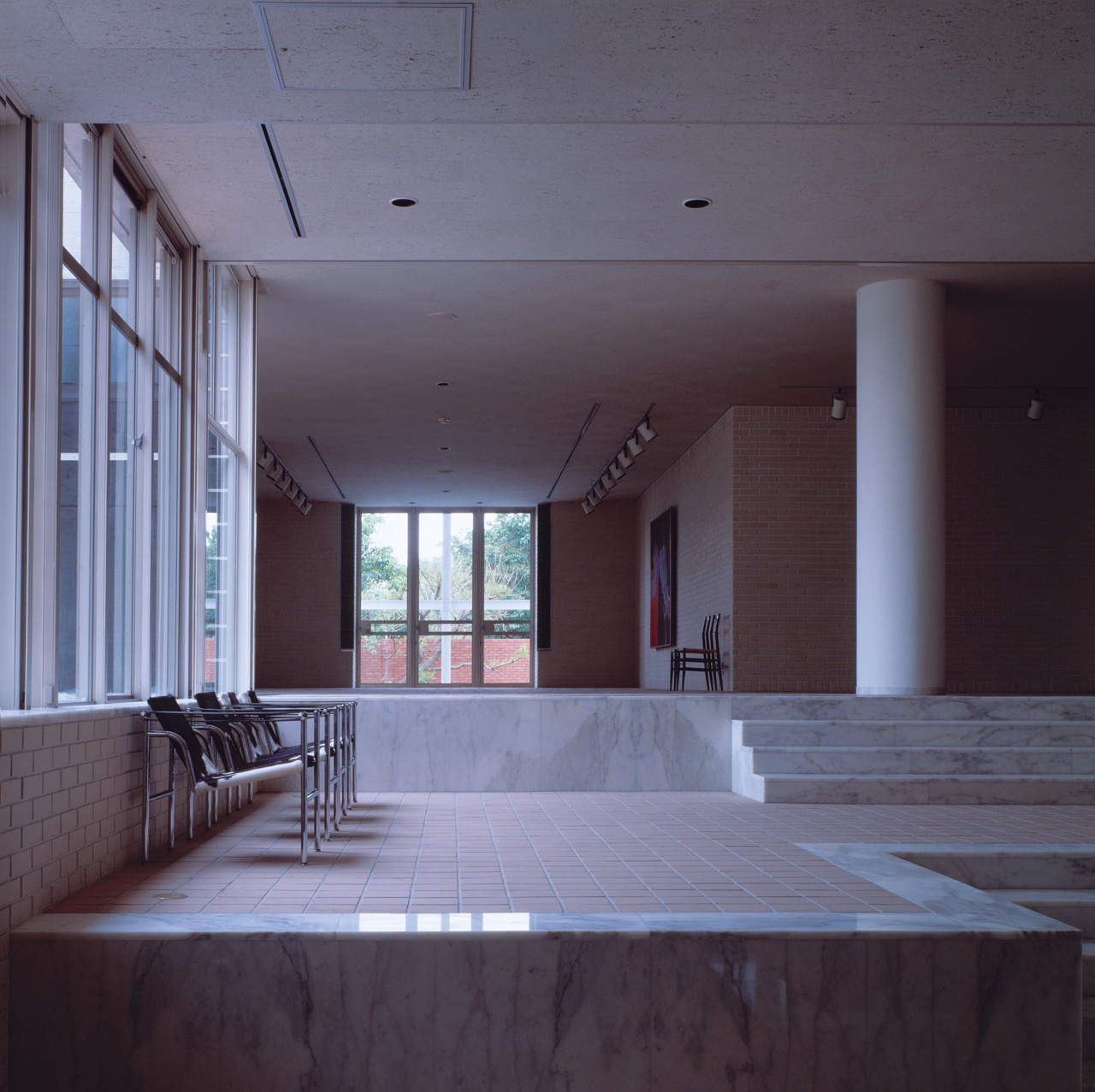Interior of the Iwasaki Art Museum buildings designed by Fumihiko Maki, shown on the inner sleeve of the second Kankyō Ongaku LP. Photo: Osamu Murai. Image courtesy Kumi Murai and Teruko Murai.