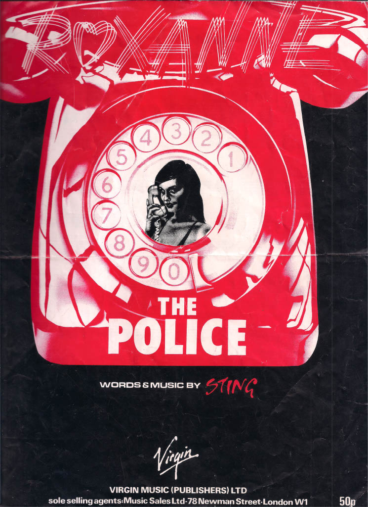 The Police, “Roxanne” 45 sheet music (Virgin Music Ltd, 1978). From Reversing Into the Future: New Wave Graphics 1977–1990, page 256. Courtesy Pavilion.