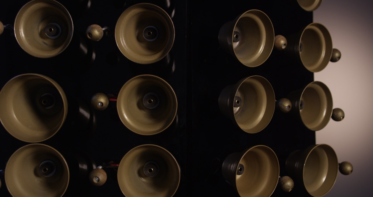 Behind Angliss’s ingenuity stretches a long, discontinuous tradition: composers whose longing for unfamiliar timbres took them beyond ruses like prepared instruments or unorthodox playing techniques and into the construction of completely new instruments. Think Harry Partch, America’s “hobo composer,” who from the late 1930s onward built his own assemblages like the Cloud Chamber Bowls and the Mazda Marimba (made out of lightbulbs!). Starting in the early 1950s, the French brothers François and Bernard Baschet devised glass sound structures like the Cristal Baschet. Earlier figures from the same experimental UK scene as Angliss, who is fifty, also resorted to creating new instruments. Originally a sculptor, Max Eastley makes sound-generating contraptions like the water-based Hydrophone, while the Bow Gamelan Ensemble’s site-specific performances were something like an audio equivalent to land art and involved pyrotechnics and noise-making automatons.