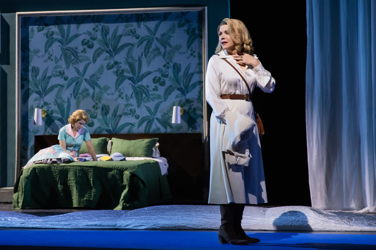 Kelli O’Hara (top) as Laura Brown and Joyce DiDonato as Virginia Woolf in The Hours. Photo: Evan Zimmerman / Met Opera.