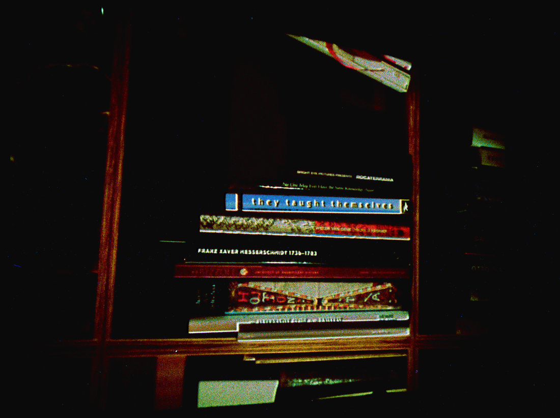 Burgin appears in The Secret World but not as an explainer or thesis proposer. Her comments about the books she handles are often disembodied, heard offscreen. “Look at the eye!” “It all goes back to electricity.” “It’s like trying to understand the ether.” “I don’t know where it is. I’ll find it.” It’s possible to imagine these words coming from the authors themselves as they sought to communicate their findings to a baffled or indifferent world. My character sketches above furnish more biographical ballast than is available in this film, which focuses on mood, emanations, whatever we infer from the titles glimpsed on the spines: They Taught Themselves, We Are Not Alone, Reading Is Believing.