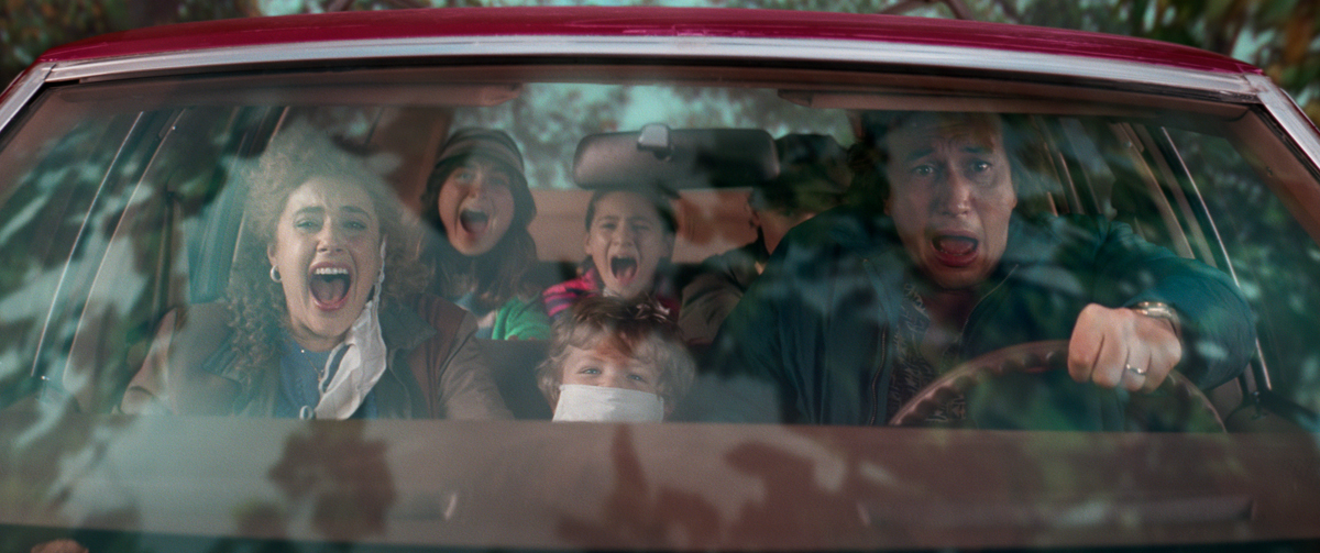 And then it happens. In lectures, Siskind claims Americans love to gawp at crashes. Now rhetoric turns real, or real-ish: a drunk truck driver plows into a train and the result is an “airborne toxic event,” a brume of poison that forces Jack and his family to flee for their lives. Cue pandemonium. Traffic jams and cloud formations that recall premillennial apocalyptic movies. Manic sequences, in which the Gladneys skelter through woods and end up drifting down a river, are straight out of Spy Kids. (Unlikely? Baumbach did coscript Madagascar 3.) Then there are subplots in which Babette has sex with a weirdo drug dealer, Jack morphs into a pistol-wielding avenger, and a German nun (a wonderful Barbara Sukowa) proves to be an acerbic apostate.