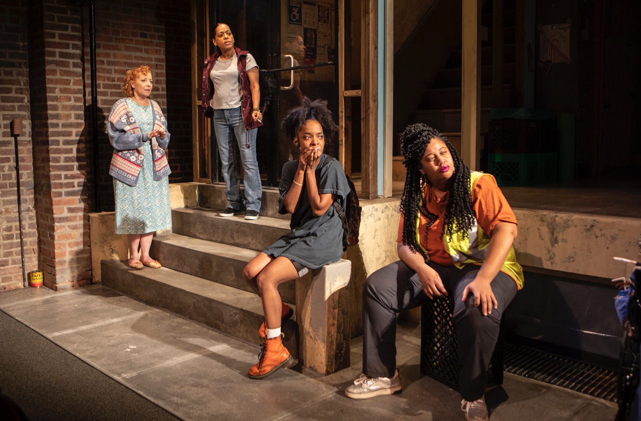 Elizabeth Canavan as Rockaway Rosie, Liza Colón-Zayas as Sarge, Kara Young as Little Melba Diaz, and Pernell Walker as Munchies in Halfway Bitches Go Straight to Heaven. Photo: Monique Carboni.