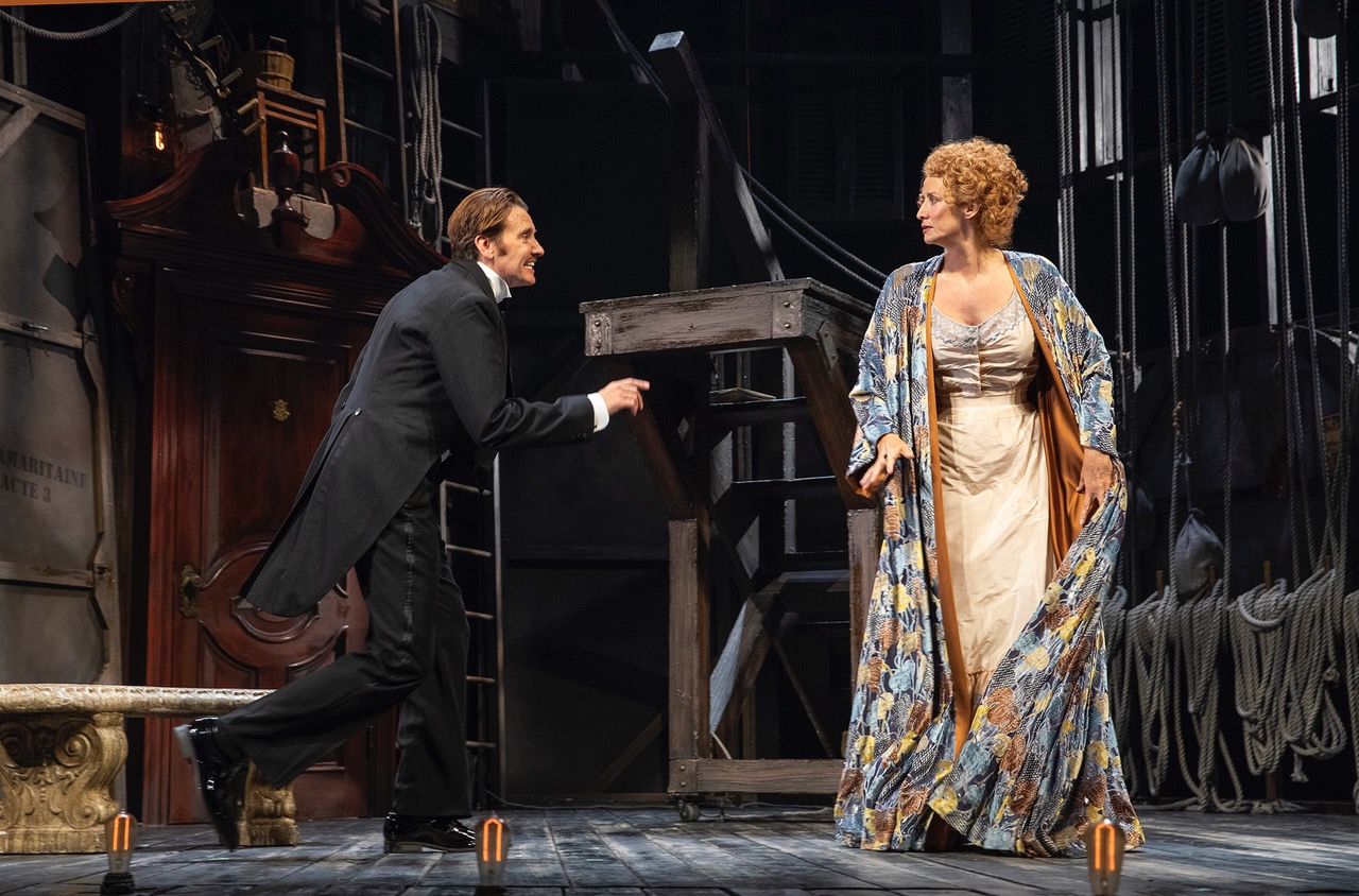 Jason Butler Harner as Edmond Rostand and Janet McTeer as Sarah Bernhardt in Bernhardt/Hamlet. Photo: Joan Marcus. Image courtesy Roundabout Theatre Company.