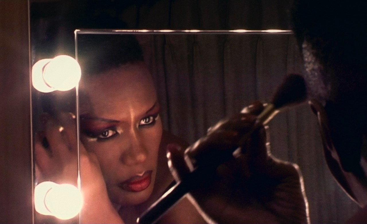 Sophie Fiennes’s Grace Jones: Bloodlight and Bami is notable for what it is not. It is not a lamentation for The Aging Woman, and the film has little relationship to nostalgia. It is not filmed in the exploitative spirit of conventional music documentary, although stylized concert footage constitutes nearly half its runtime. And if the film is a biography, it is an allusive one unmoored from chronological time. The director’s gaze is furtive, in this strange and engrossing portrait of the recombinant performer Grace Jones, who arrives to the enthralled viewer through a litany of impressions.