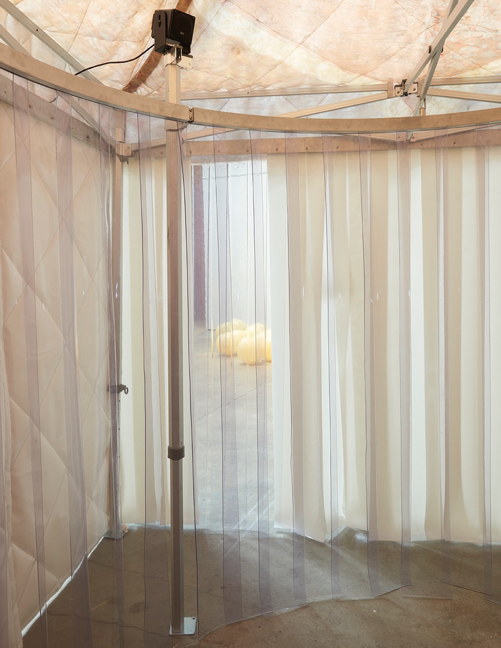 Jacqueline Kiyomi Gordon, Noise Blanket, Nos. 11–16, or Everybody’s Got Choices, 2019 (detail). Silicone, aluminum, vinyl, yarn, polyester filling, speakers, noise file filtered to the frequencies subtracted by the acoustics of the sculpture. 120 × 120 × 130 inches. Courtesy the artist and Empty Gallery. Photo: Kyle Knodell.