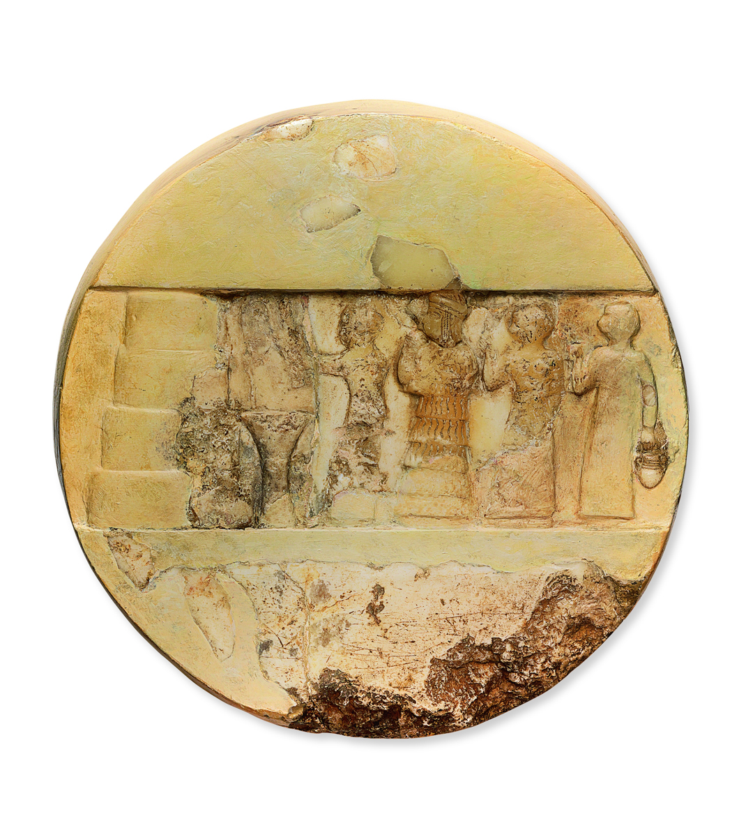 Disk of Enheduanna, daughter of Sargon, Mesopotamia, Akkadian, Ur (modern Tell el-Muqayyar), gipar Akkadian period, ca. 2300 BC. Courtesy the Penn Museum.